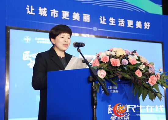 ▲福湘板材常德运营中心总经理林美君宣读第十一届设计师作品大赛获奖通报