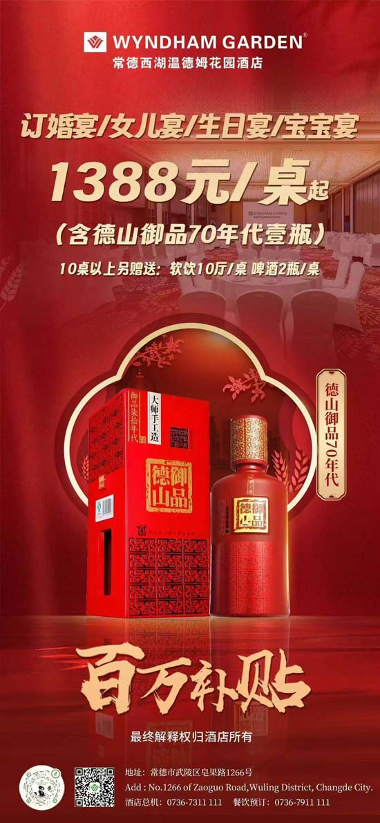 “百万补贴”助力幸福时刻|常德西湖温德姆花园酒店宴席尽显品质温情