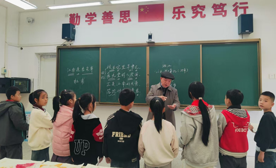 为弘扬中华优秀传统文化,提升学生审美素养与人文底蕴,推动义务教育教学改革走深走实,11月11日上午,湖南幼专老科协诗词分会在会长龙熙银教授的带领下,走进教育部义务教育教学改革实验校——石门县蒙泉镇芙蓉学校,开展“诗书画进校园”专题活动。活动以“浸润·传承·创新”为主线,通过专家引领、师生互动、作品展示与实践指导,为该校教育教学改革注入传统文化的新活力。
