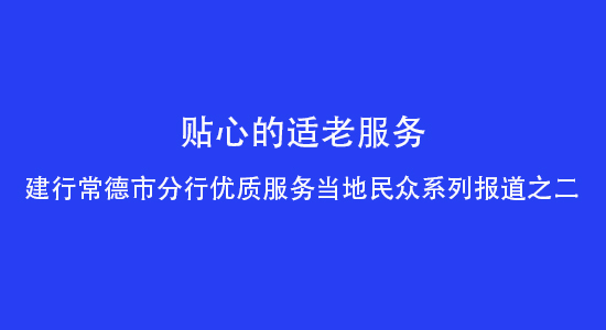 近年来,建行常德市分行优化服务流程,全心全意为民服务,得到当地民众广泛赞誉。本网站自今年8月25开始,对该行优质服务当地民众做系列报道。“没想到现在银行服务这么周到,连我们老年人的需求都考虑得这么细致!”75岁的李大爷在建行常德人民西路支行办理完业务后,满脸笑容地竖起了大拇指。这背后,是该行为老年客 [详细]