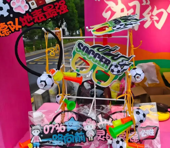 锚定湘超流量风口,粉色IP引爆赛场消费。作为湖南省内顶级足球赛事,“湘超”联赛自带高关注度与话题热度。“霹雳笋设计”团队创始人彭景介绍说,凭借对体育IP商业化的独到洞察,团队于2024年9月成功承接了“湘超”常德赛区整体IP视觉设计项目。团队将机械工程专业的结构美学与艺术设计的创意思维深度融合,提炼常德桃花源标志性的“桃花粉”元素,打造出涵盖球迷服饰、赛事周边、地域文化手办等系列文创产品。产品一经推出便引爆赛场消费,单场销售额突破10万元,相关话题在抖音等社交平台迅速发酵,实现“赛事流量”向“消费转化”的高效落地。