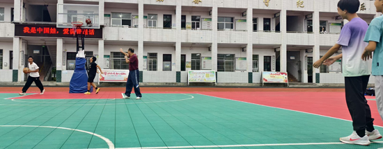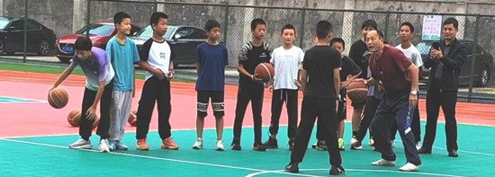 尽管是所农村小学,但学校布局合理、设施齐全。康老师到场后马上和师生融为一体,在指导训练时,他利用在师范教学时自创的“三边法”(边示范、边讲解、学生边模仿)进行训练,不到半个小时,小学生们都基本掌握了篮球持球突破的动作技术要领。