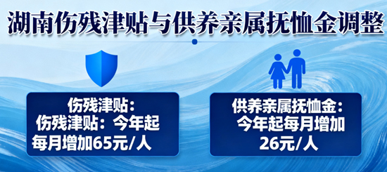 今年起+65元、26元/人/月!湖南提高伤残津贴和供养亲属抚恤金