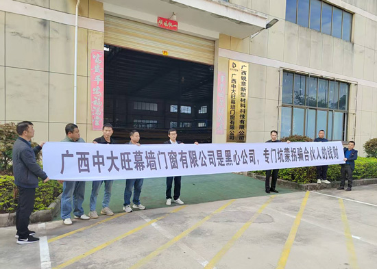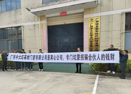 广西中大旺幕墙门窗公司被指坑骗合伙人钱财 拉横幅维权事件引发行业关注