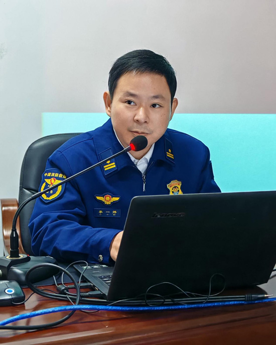 ▲常德市消防救援支队防火监督科科长李一炜主持开班仪式