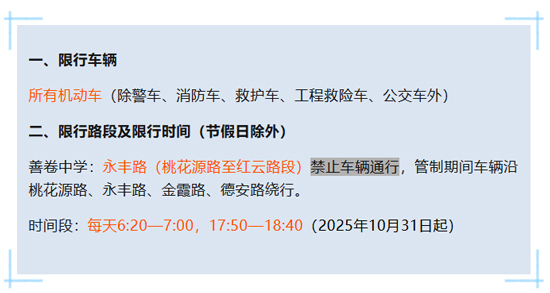 为维护常德江南城区校园周边道路交通秩序,保障中小学生的出行安全。鼎城区交警部门对善卷中学周边道路实施限时限行交通管制。