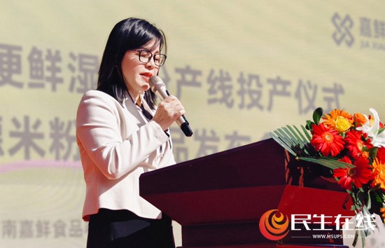 湖南嘉鲜食品科技有限公司董事长张玉娟在投产仪式致辞中介绍,此次投产的生产线实现了从配米到成品22道工序全自动化,其锁鲜技术达到全国领先水平,成为湖南省鲜湿方便米粉全产业链布局最完整的制造企业。“从种子库优选品种到武陵区种植基地培育,从实验室千次配方调试到调味品车间万次风味校准,我们始终坚守科技驱动,品质领鲜理念。”张玉娟表示,公司通过产学研融合模式与高校深度合作培养创新人才,在太阳山建立电商小院助力乡村振兴,生动践行了企业社会责任。目前,公司研发的20余款“鲜滋友”系列产品已成功走进“湖南院士一桌饭”餐桌。