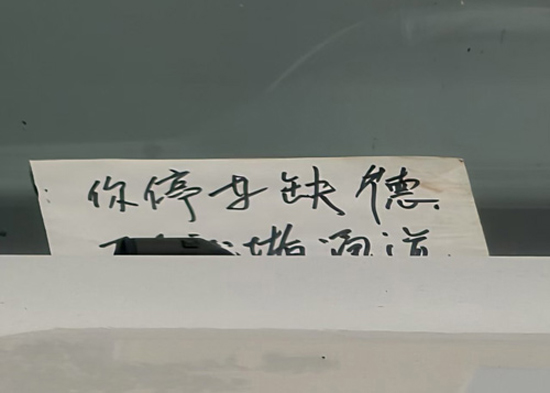 值得注意的是,违停车辆的挡风玻璃上,被人贴上了一张纸条“你停车缺德”等字样,字里行间透露出无奈与气愤。据了解,这种车辆违停堵住通道的情况并非个例,已经存在一段时间了,不仅影响居民出行,也对商铺的正常经营造成了一定困扰,“有时候送货的车都进不来,只能在外面卸了货再搬进来,很麻烦”。
